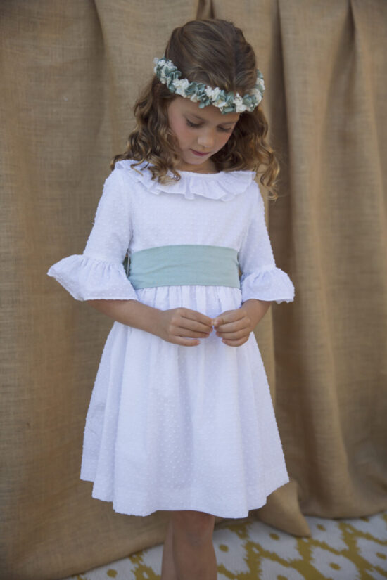 Vestido de ceremonia realizado en algodón de plumeti blanco.