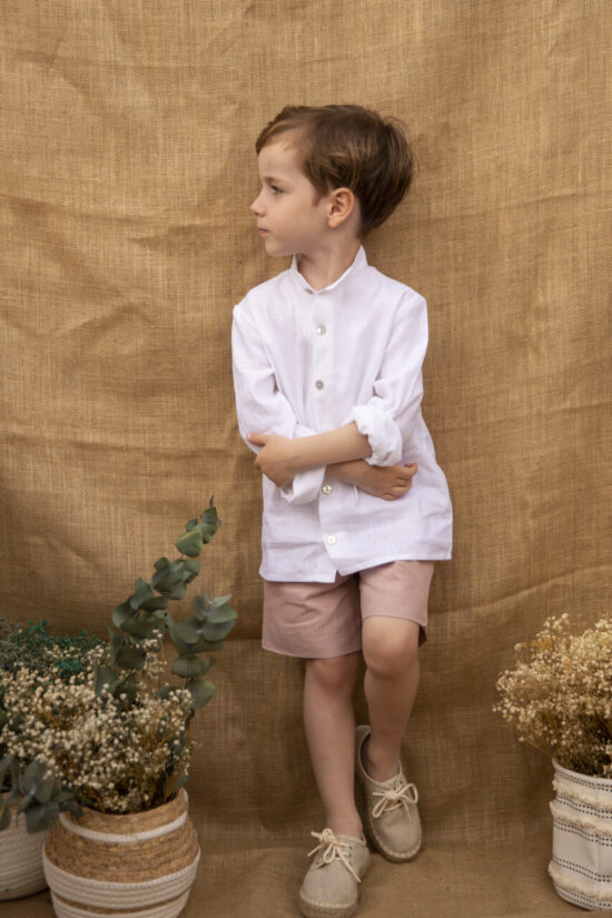 Camisa de lino blanca con cuello mao abotonada hasta abajo