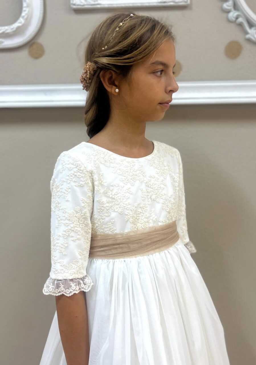 Confeccionamos los vestidos por patrones de diferentes tallas, uno a uno de forma artesanal y con el largo personalizado de cada niña.