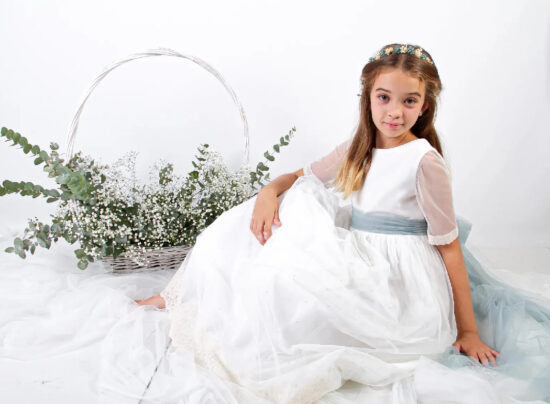 Recomendamos lavar tu vestido de comunión en agua fría, sin centrifugar para reducir el encogimiento y deterioro de la prenda. Usa un detergente para prendas delicadas y en las manchitas más resistentes atrévete con un producto más fuerte y especifico en la mancha. No uses la secadora. Cuélgalo en una percha al sol y si tienes que plancharlo, siempre con temperatura suave y del revés.
