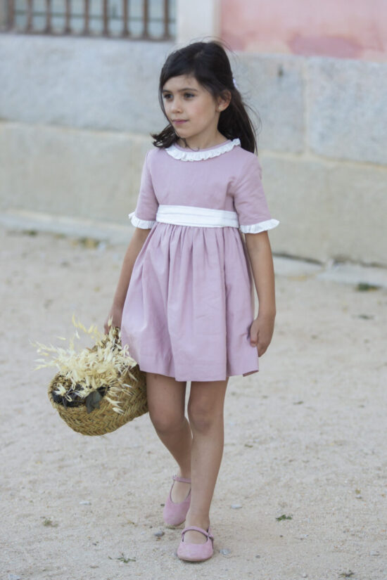 Vestido realizado en lino con adornos en marfil.