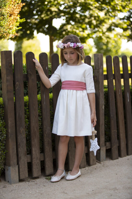Vestido con espalda en pico realizado el cuerpo en lino con viscosa marfil y mini remates de adornos en espalda y fin de manga al codo puedes elegir otro color de lazada .